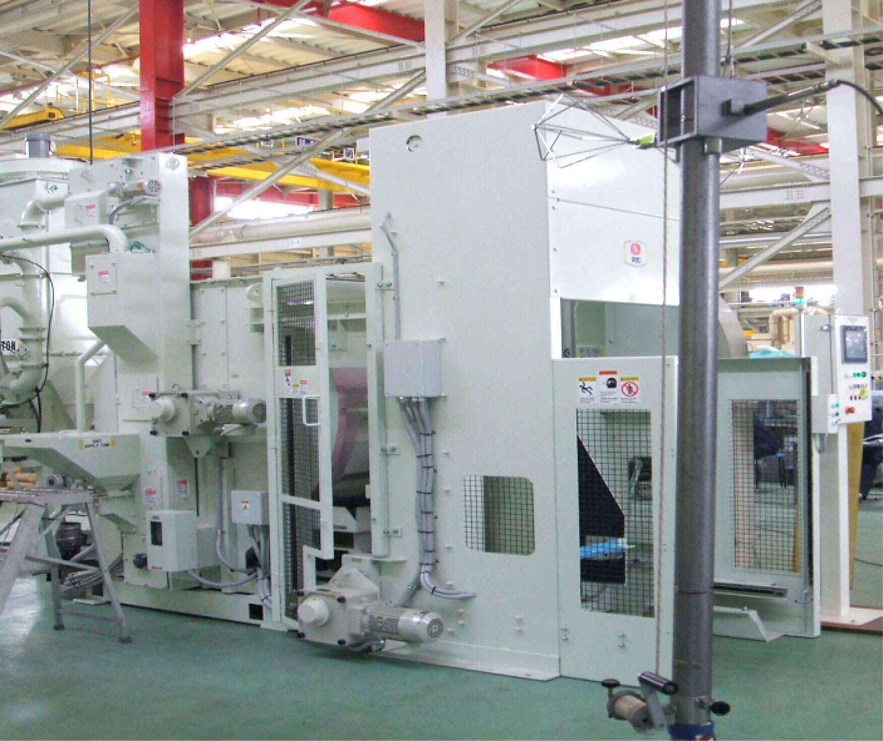 製造現場では規格に規定された電界レベルの条件を作ることは殆ど不可能です。加えて、電波法に抵触しないよう電磁波を遮蔽することが難しく、作業者が電磁波に曝されることによる健康面も配慮すると、現場で実施することは現実的ではなく、代替試験を行う必要があります。代表的な試験は、空中伝播ノイズが装置のケーブルを介して印加されることを想定した、ケーブルに対する80MHz以上の試験信号の印加です。