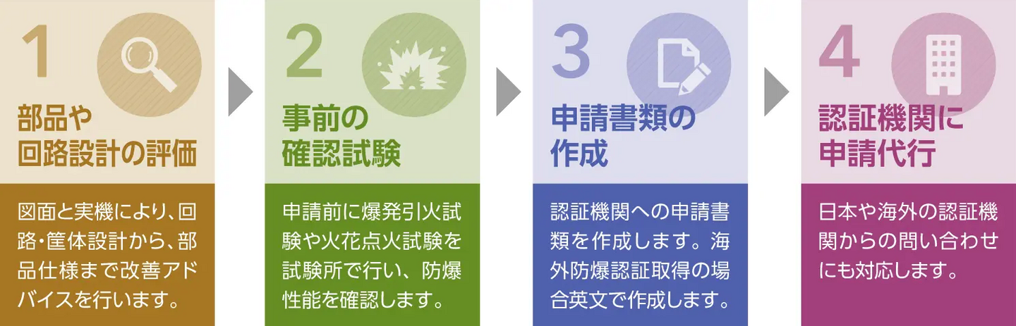 防爆認証取得を一貫してサポートします。